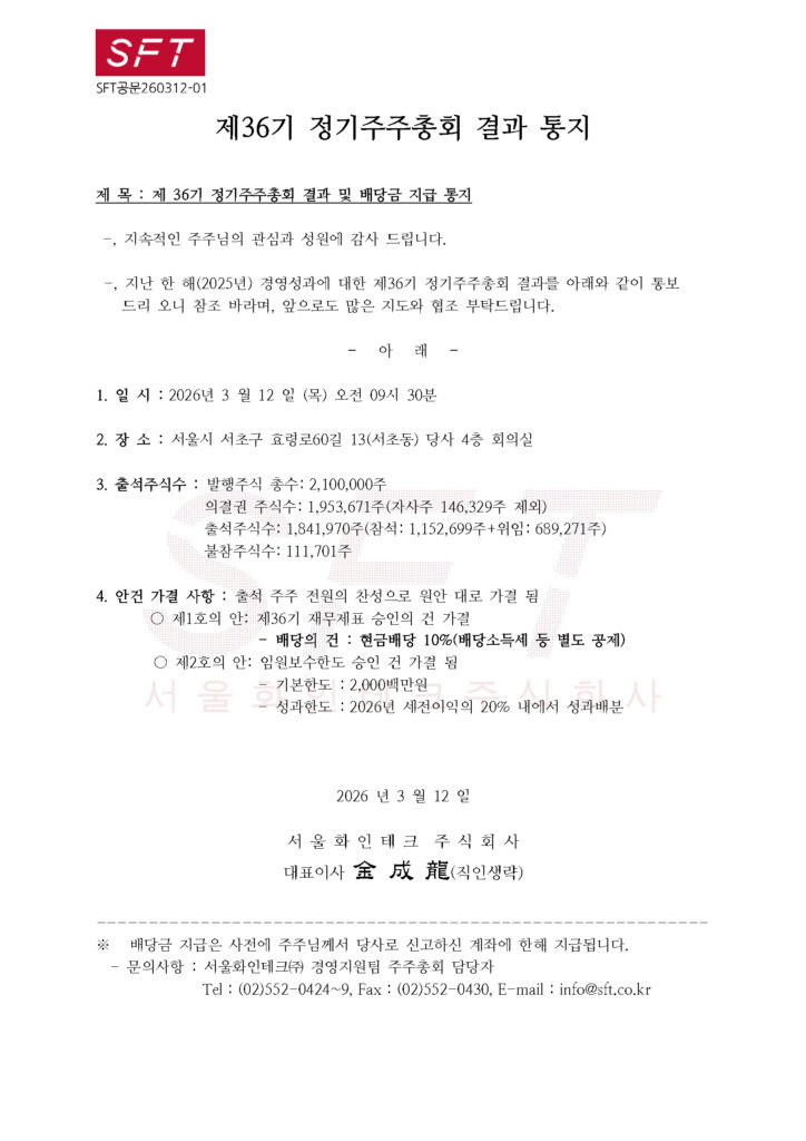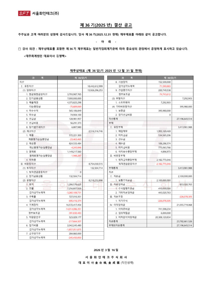 준비된 기업. 서울화인테크