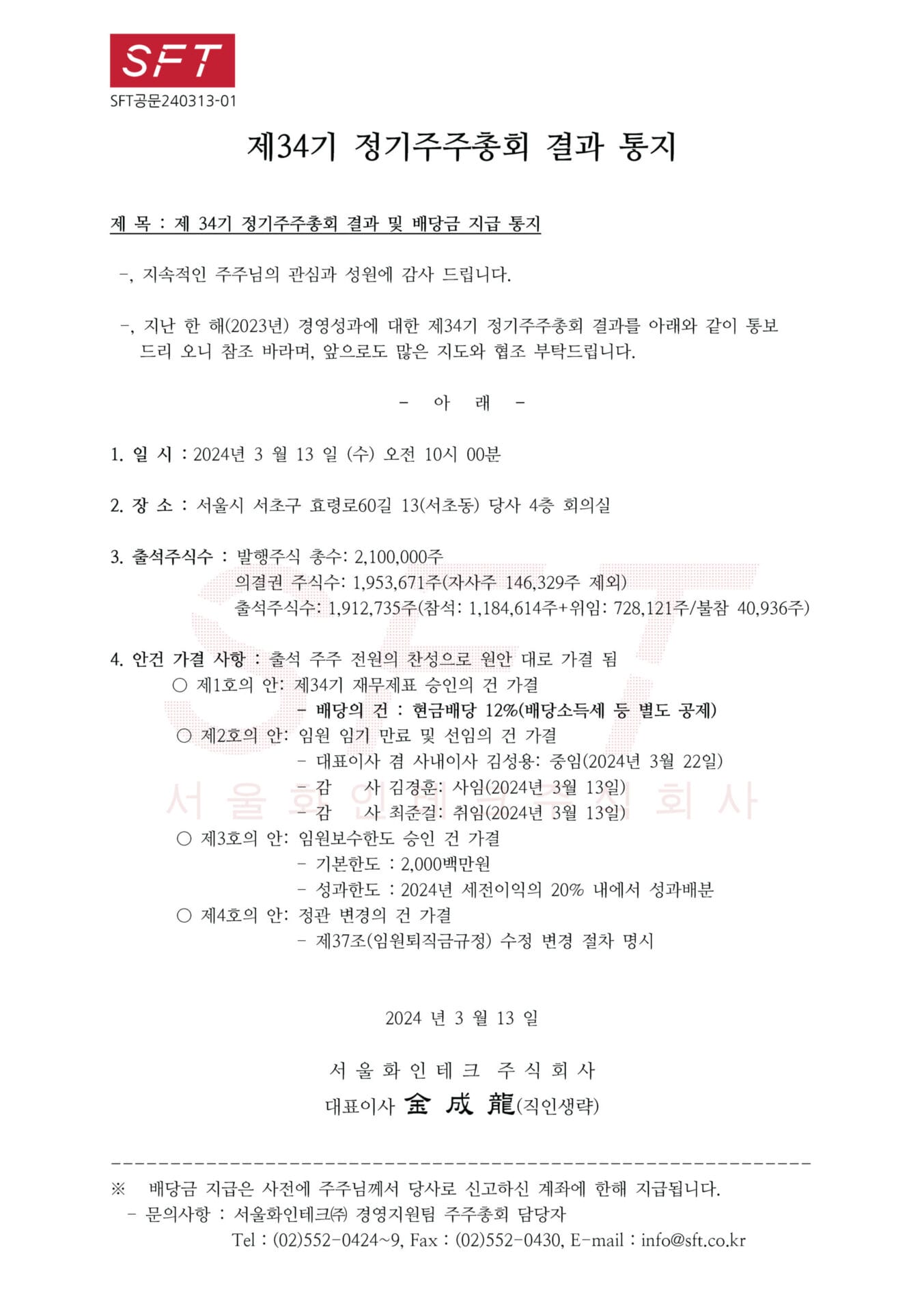 | Notification of the results of the 34th regular shareholders' meeting | 2024-03-14 | |